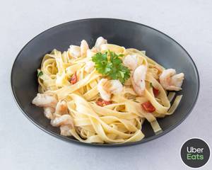 Sos pomidorowy, pietruszka, czosnek, Grana Padano, pomidorki cherry, krewetki. Rozmiar do wyboru.