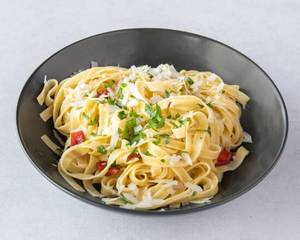 Biała cebulka, chili, Pancetta, śmietana, natka pietruszki, Parmezan.