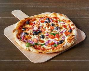 Sos pomidorowy, czosnek, papryka, cebulka Cipolini, szpinak, pomidorki cherry. Rozmiar do wyboru.
